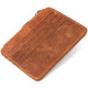 Маленька шкіряна кредитниця з натуральної шкіри коричневого кольору з ефектом старовини. Аксесуар дуже елегантно виглядає і не займає багато місця. Оригінальний дизайн з відділеннями для карток під хлястиком робить кредитницю ще більшою та практичнішою.