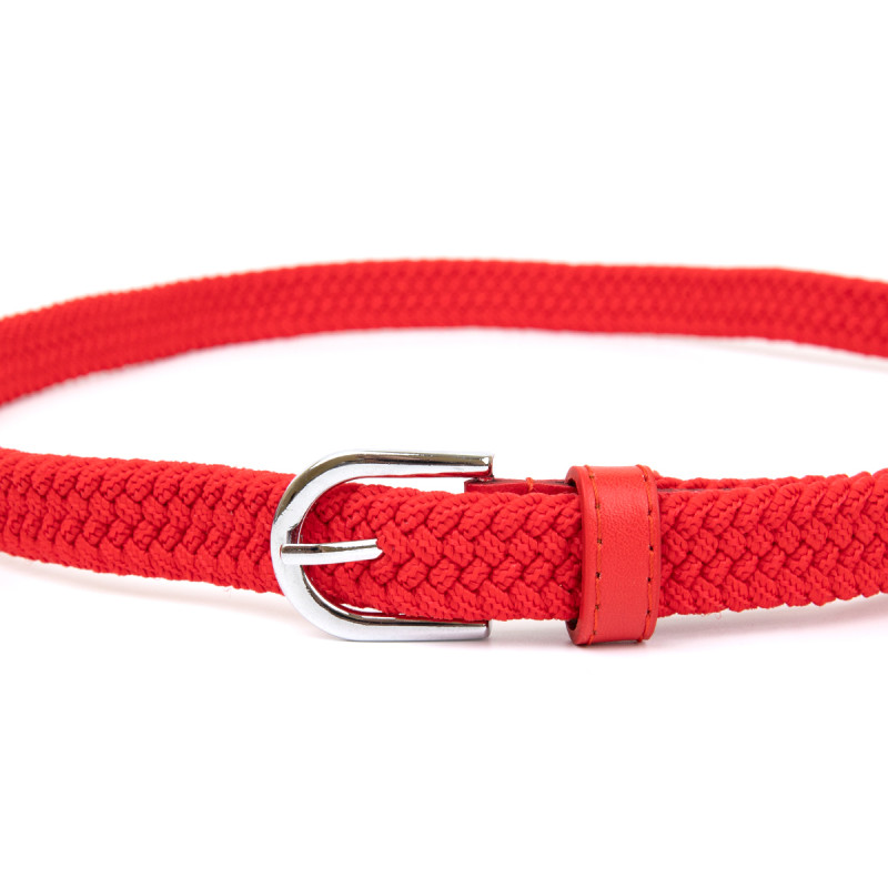 Тонкий текстильний ремінець для дівчат яскравого червоного кольору. Пояс має класичну пряжку сріблястого кольору з міцного сплаву. Тонкий ремінець підійде як під штани, так і під плаття. Виріб тягнеться і не шарується. Особливістю даного ремінця є те, що вам не потрібно робити дірки в полотні - вони з легкістю робляться за допомогою хлястика на пряжці. Візерунок текстильного полотна розсується і хлястик проходить наскрізь. Незважаючи на свою доступну вартість аксесуар має високу якість і прослужить вам далеко не один рік. На нашому сайті виріб доступною в різних кольорах.