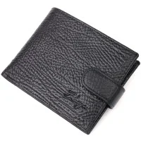 Надежный мужской бумажник из натуральной гладкой кожи в два сложения ST Leather 19414 Черный