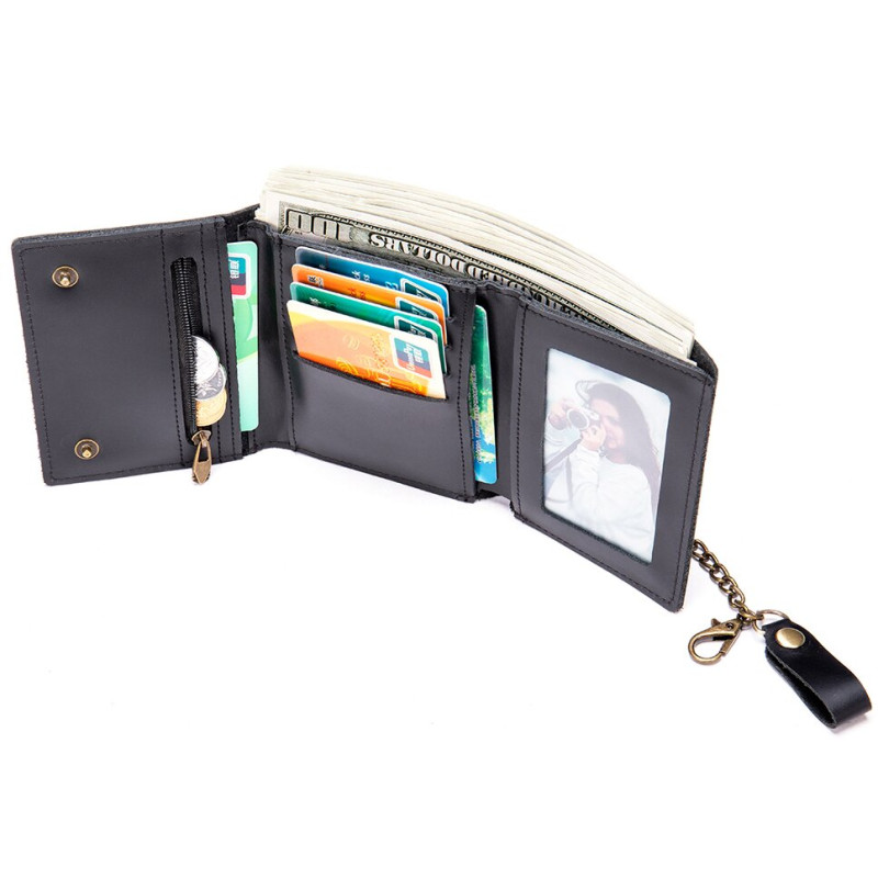 Функциональный и стильный кошелек унисекс на цепочке. Модель имеет неповторимый и оригинальный дизайн. Небольшой размер аксессуара позволит поместить его в небольшую сумку или карман штанов. Подойдет для любителей небольших кошельков. Изделие в три сложения. Кошелек будет прекрасным подарком для ваших близких и друзей.