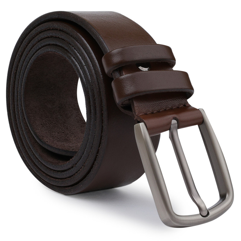 Мужской ремень в красивом и стильном коричневом цвете с классической пряжкой. Изготовлен аксессуар из натуральной кожи, высокое качество которой ощущается сразу, как только Вы возьмете его в руки. Данный ремень отлично подойдет под любой стиль одежды, поэтому станет отменным подарком для родного человека.