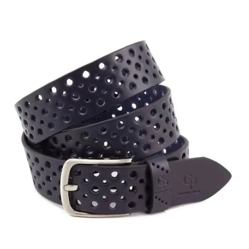Кожаный ремень Casual, синий перфорация Grande Pelle 431012308