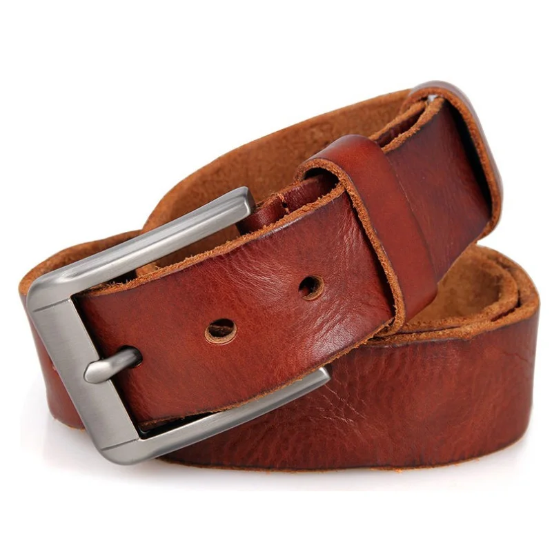 Современный мужской джинсовый ремень коричневого цвета. Аксессуар выполнен из натуральной высококачественной кожи в стиле винтаж, изделия из которой очень популярны в этом году. Так как ремень поставляется в красивой коробочке, его можно использовать в качестве подарка.