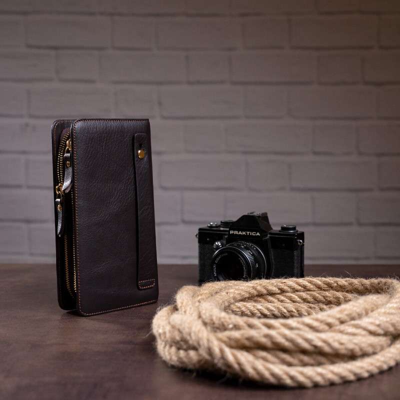 Зручна чоловіча барсетка. В неї легко вміститься все найнеобхідніше: гроші, картки, телефон, паспорт, права. На зворотній стороні аксесуара є ремінь, щоб барсетка фіксувалася на руці. Барсетка просто необхідна річ для кожного водія. Купуючи таку барсетку ви отримуєте найвищу якість і стильний дизайн.